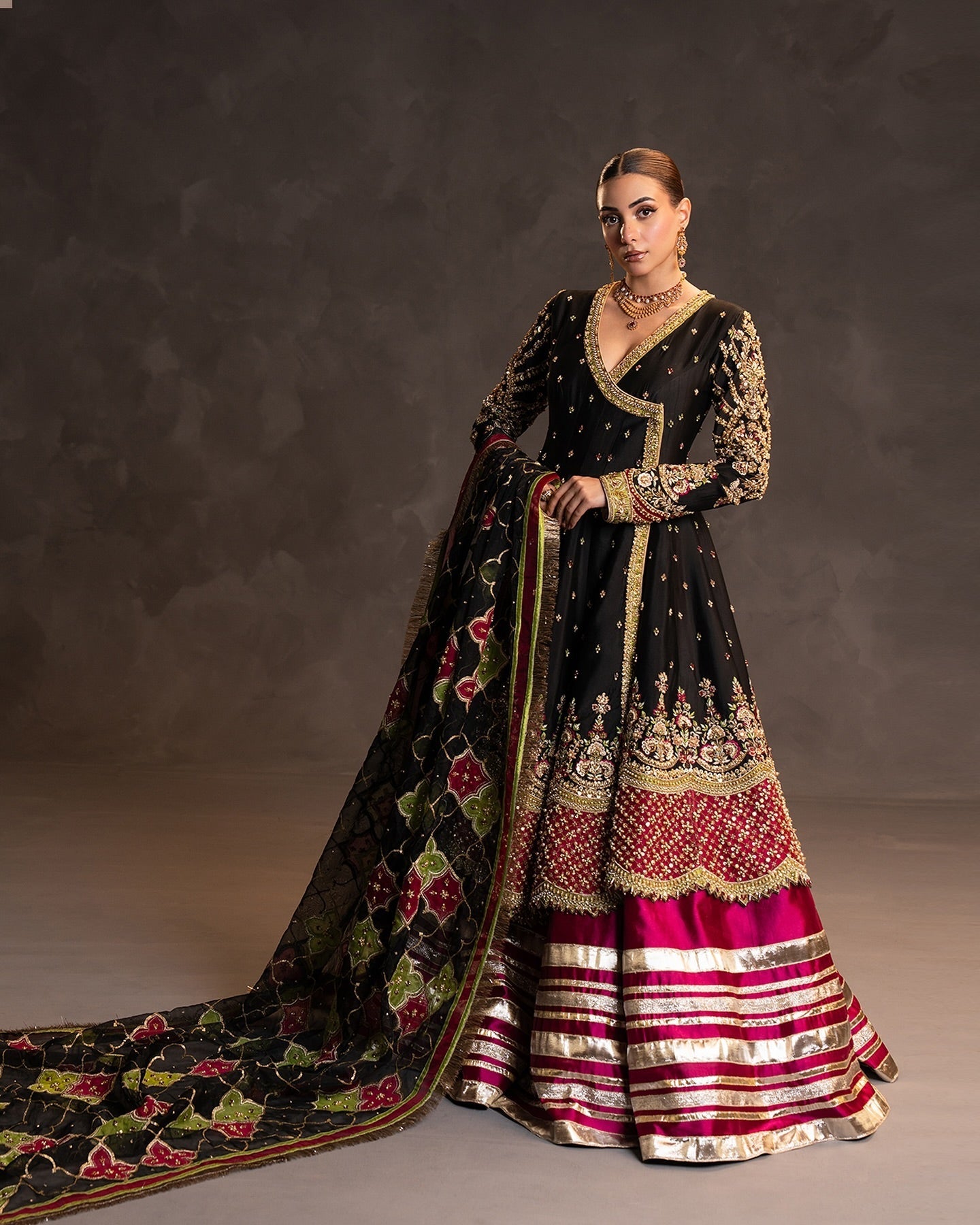 Elevate your fashion game with the Ahmad Sultan Wedding Festive Raw Silk Hand Embroidered RAQS Sawan's. Each piece is exquisitely crafted with intricate embroidery on raw silk fabric. Make a statement and stand out at any occasion with this luxurious and unique ensemble.