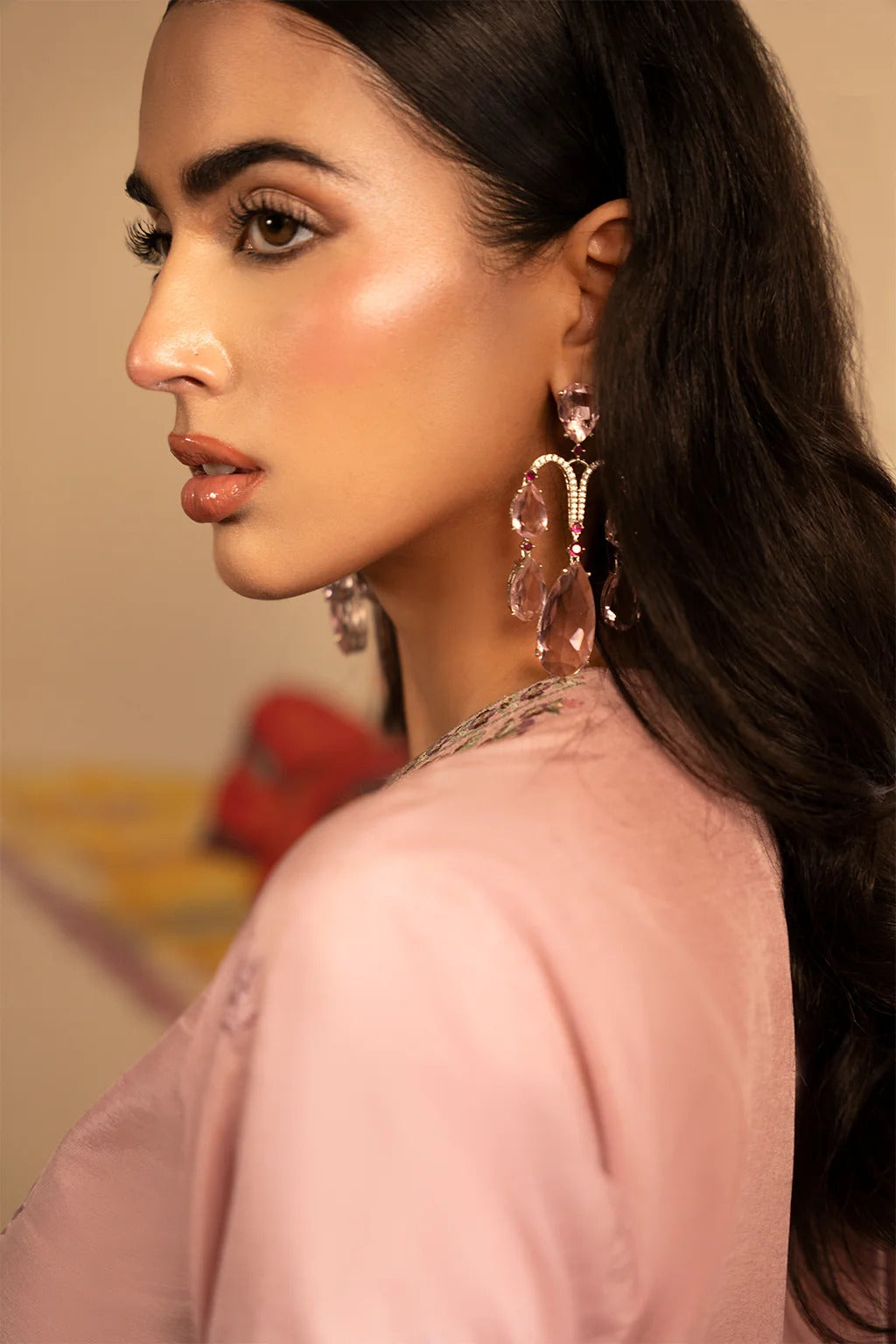 Contrast dupatta featuring heavy embroidered borders for a touch of drama and opulence.